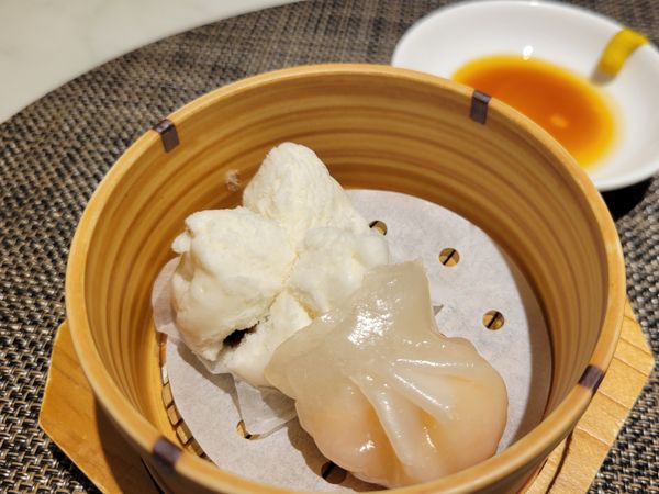小さな肉まんと海老の蒸し餃子でした。まったく違う2種を楽しめて得した気分♪
