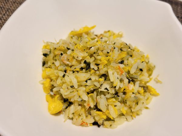 「蟹肉と花芽わさびの炒飯」