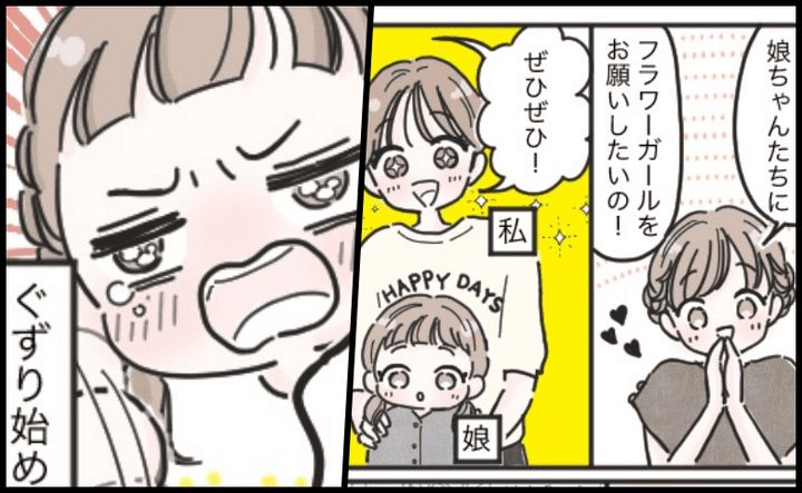 3歳の娘が結婚式にフラワーガールとして参加することになりました。ドレス姿でお花を撒く娘のかわいい姿を想像してワクワクするとともに、気分屋の娘が無事にこの役目を全うできるのか、私はドキドキしながら当日を迎え……。