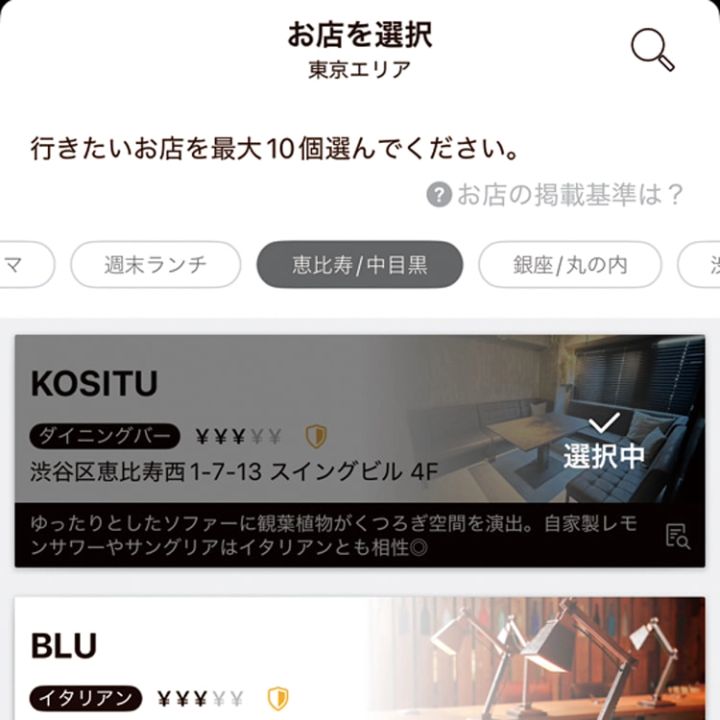 10個まで選べる!同じお店を設定してる人が優先して表示されるから、そこから選別してみて。