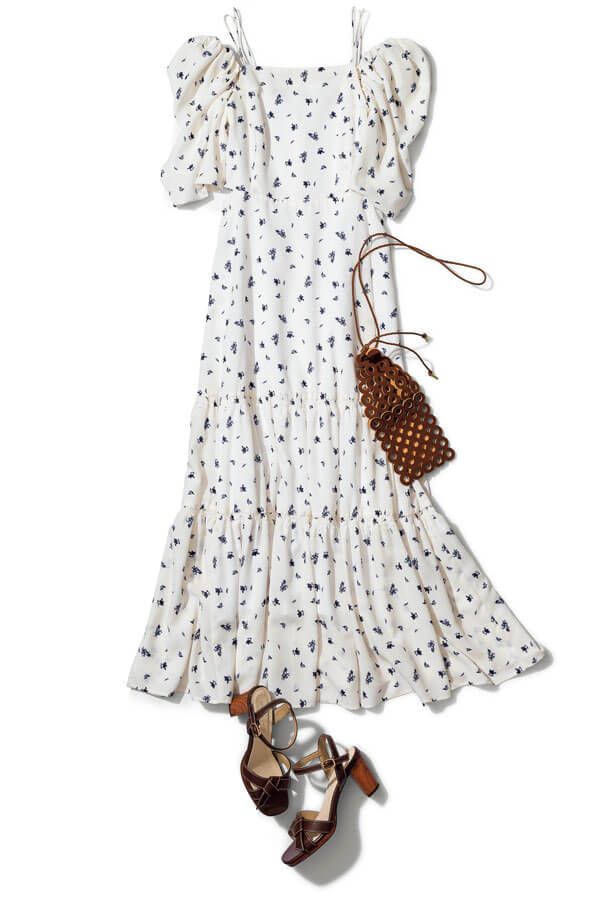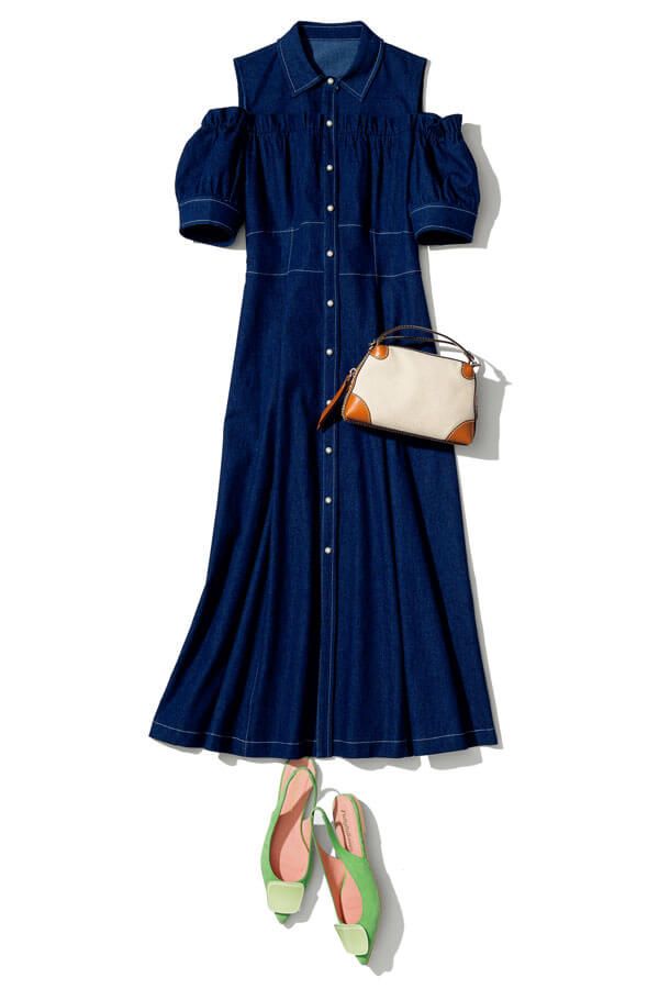 ワンピース¥27,500/FRAY I.D バッグ¥19,800/メアリ オル ターナ(AL Design Inc.) サンダル¥7,700/オリエンタルトラフィック(ダブルエー)