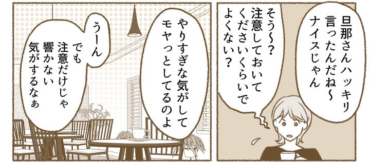 さすがにやりすぎではないかと思ったのですが、夫は「こういうのは強めに言っておいたほうがいい」と言って、話も終わらぬうちに慌てて出勤してしまいました。