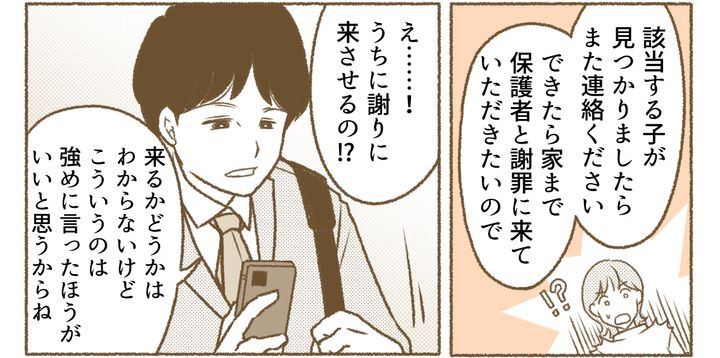 電話の終わり際、夫は「該当する子が見つかったら家まで謝罪に来てほしいのでまた連絡ください」と言っていました。