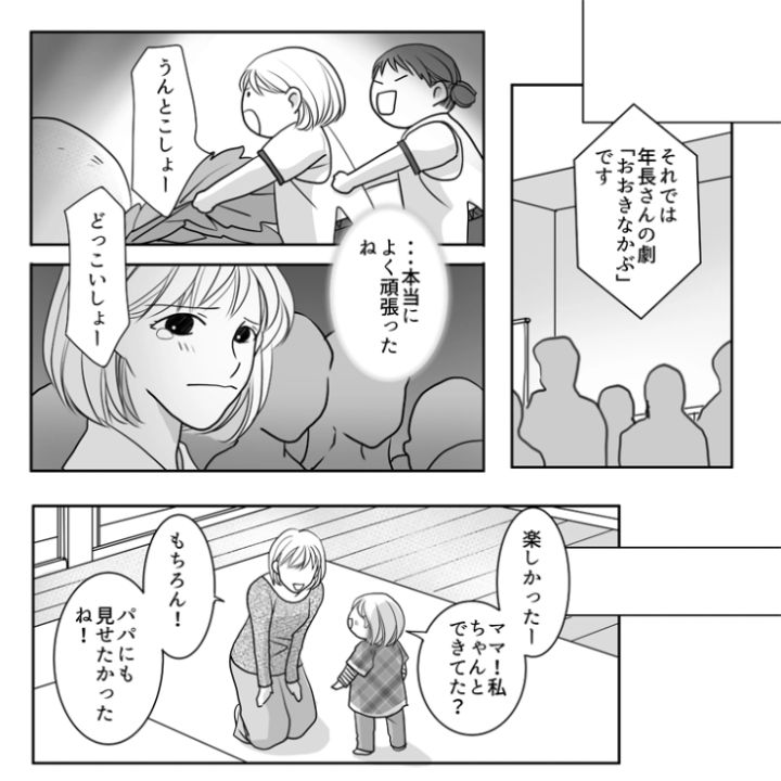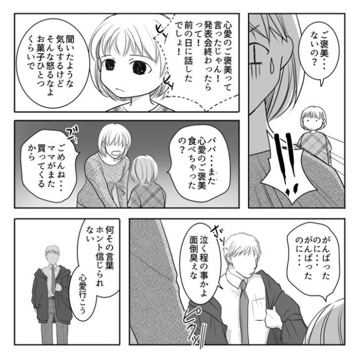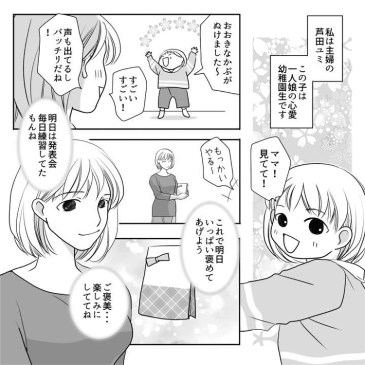 主人公のユミの娘は今度幼稚園で発表会があるようです。毎日の練習の成果を発揮すると張り切っている娘にご褒美を用意していたのですが・・・。