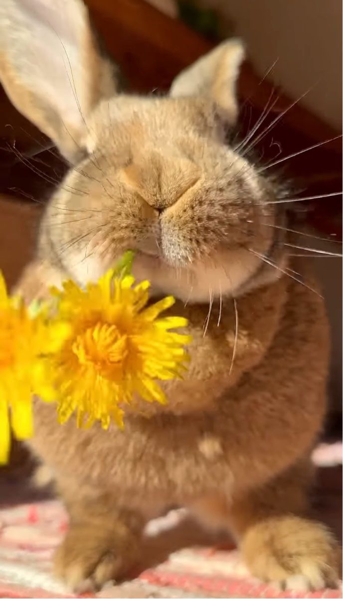 タンポポをもぐもぐ!キュートでASMRなウサギのお食事【海外・動画】