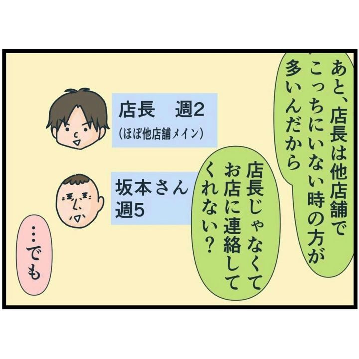 度田さんの行き過ぎた無断遅刻・無断欠勤を注意した坂本さん。確かに勢いはあったかもしれませんが、そこまで坂本さんを怒らせることをしてしまったのは度田さん自身なのですが…。度田さんは自分のことは棚に上げて坂本さんを「怖い」と店長に訴えていましたね。
