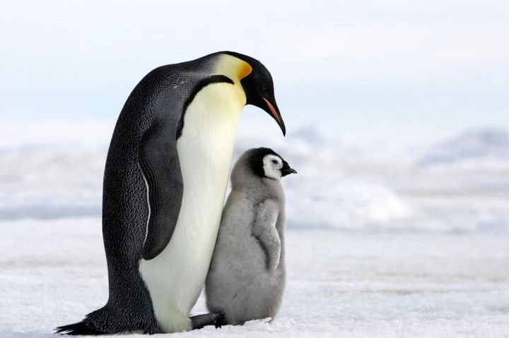 コウテイペンギンは、海氷の上でつがいとなり、たった一つの卵を懸命に育てます。