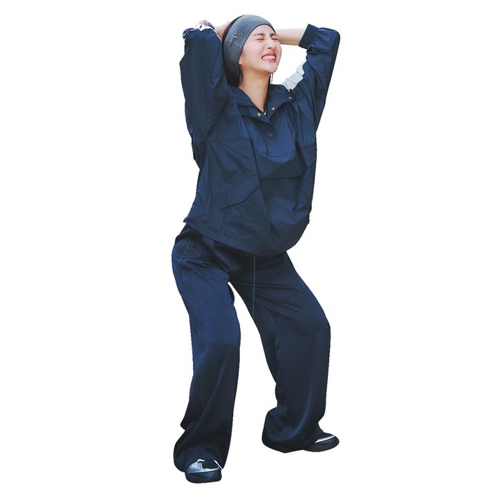 紺色とサイドラインが甘服を引き締める。IVEのウォニョンがモデルを務める注目ブランドで、ガーリーが得意。¥14,760(rolarola/nugu pressroom)