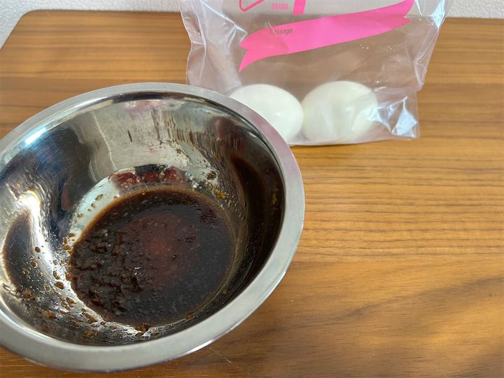 漬けている最中に余裕があれば、時々袋の中で卵を転がすことで、まんべんなく味が染み込みやすくなります。
