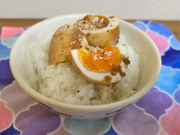 黄身のトロッと感もほどよく残っていて、イイ感じの半熟卵になっています。