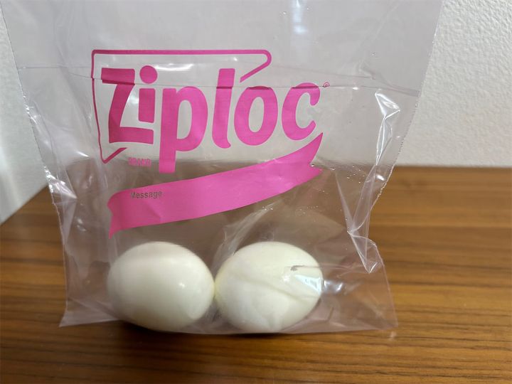 4.殻を剥いた3の卵を、ジッパー付き保存袋に移します。