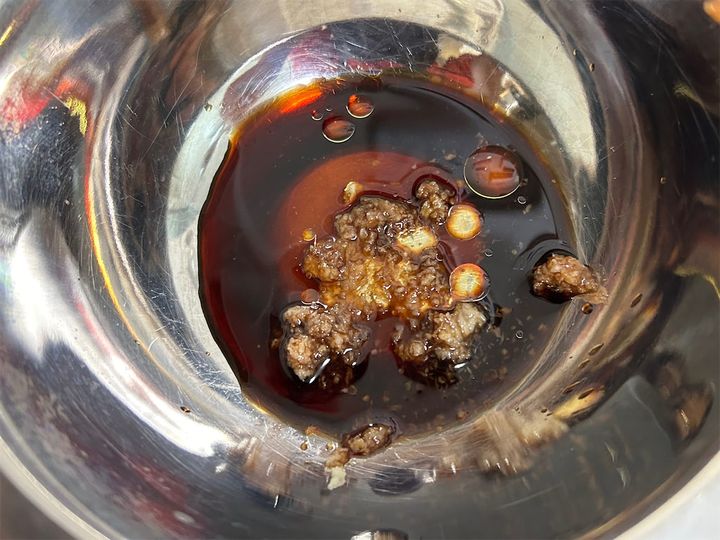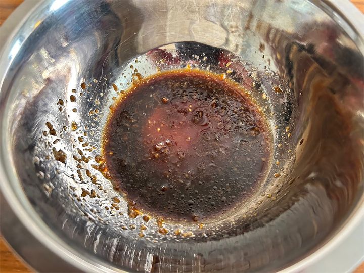 ここで、2で作ったバルサミコしょうゆの漬けだれの登場です!