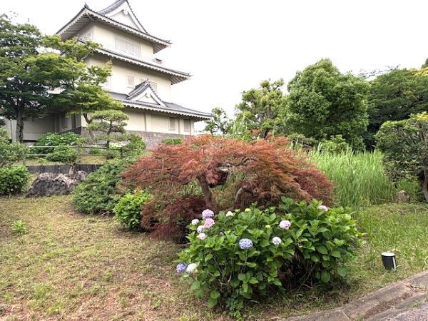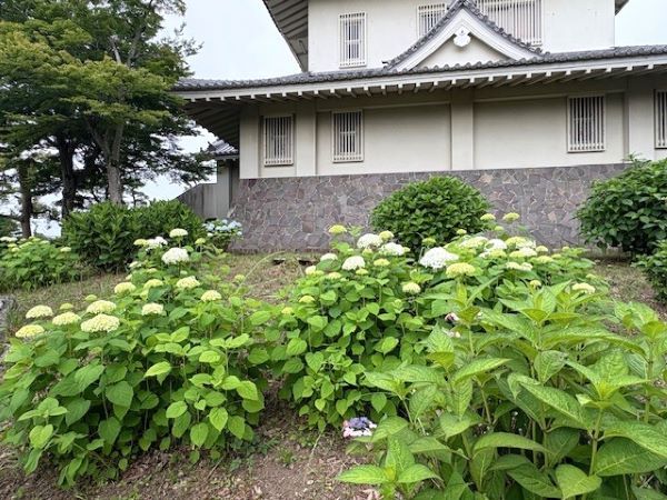 最後に騎西城のあじさいはどうなのだろうか?と思い、行ってみました。 初めての騎西城。小さめですが、周りの景色に寄り添う雰囲気が素敵なお城。こちらにもあじさいが咲いていました。