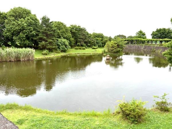 ちょうど中間地点辺りにある騎西総合公園。遊具はないのですが、カルガモがいる池や東屋もあり、散策にはぴったりの公園。釣りを楽しんだり、ワンちゃんのお散歩している方もいらっしゃいました。