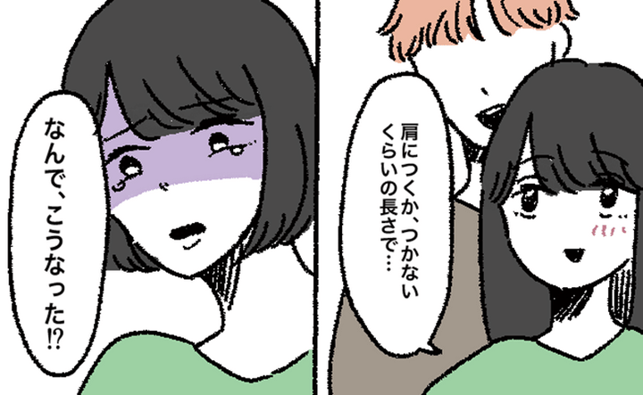 先日、胸の下あたりまであった髪を肩につくかつかないかくらいの長さまでバッサリ切ろうと、美容院に行きました。理想はギリギリ肩につくくらいだったのですが、仕上がりを見た瞬間、思った以上に短くなっていて驚きました。あごラインくらいまでがっつり切られていて、まるでおかっぱのような髪型……。かなりショックでした。