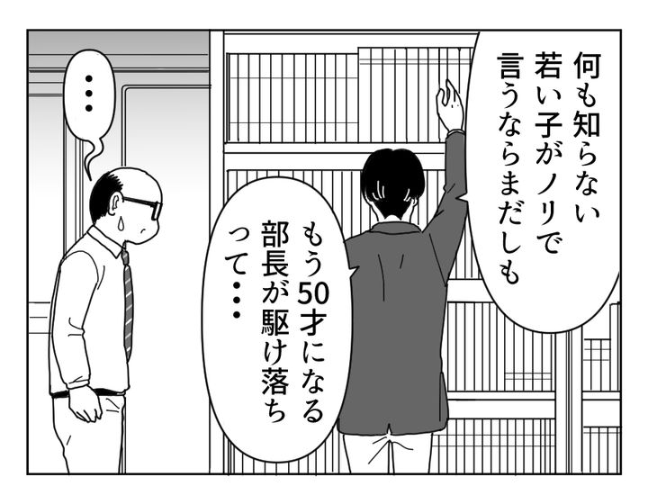丸尾部長に駆け落ちを提案されて、角田さんがすぐに断らなかったということは、少なからず迷っているのでしょう。宝島さんは丸尾部長のことを「頭の中お花畑の50才」と呼び、考え直すことを提案してきます。