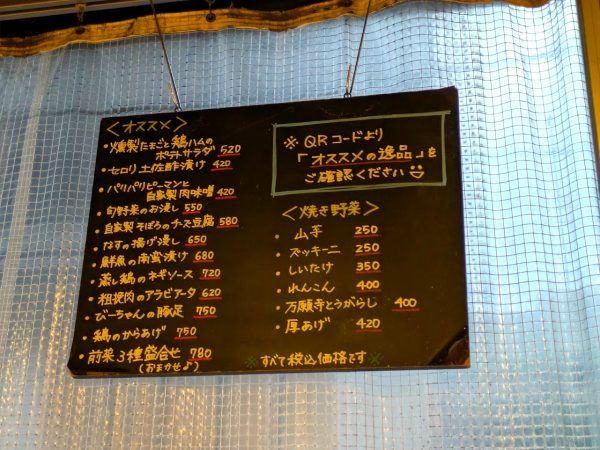 店内は、こぢんまりとしていながらもシンプルでキレイで、使い勝手のよい居心地のよい空間です。満席です。良かった~、予約しておいて~。カウンター席・テーブル席・テラス席があります。るなるなはテラス席に座りました。メニューはスマホで注文します。ボードに書かれているのはお薦めメニューです。ん~、とりあえず、カジュアルコースにします。
