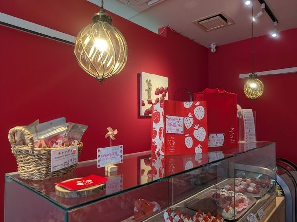 赤で統一された店内は、かわいさ満点です。有料の紙袋もいちごがデザインされたとってもかわいいものなので、手土産に袋もつけてあげると喜ばれそうですね。
