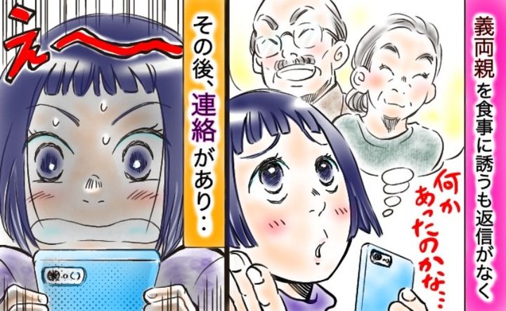 義両親が旅行へ行った帰りに、夜ごはんを一緒に食べようという話になりました。ですが、行き先を変更すると連絡が来てから音信不通に。予約していたお店をキャンセルしたところ……。