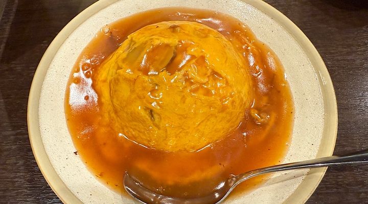 天津飯 1350円 白飯にふわトロかに玉と甘酢ソース。