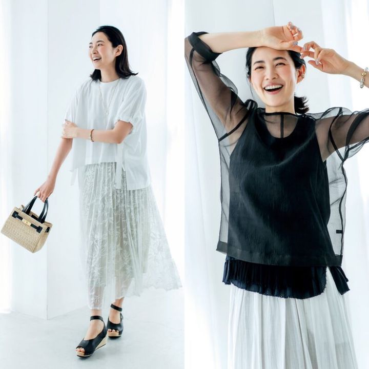 50代のモノトーン【白】Tシャツと【黒】シアーが大人の夏服を上品に格上げ!