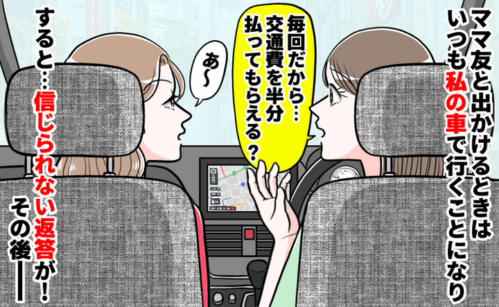 「交通費、半分払ってもらえる?」いつも私が車を出すのでお願いすると…ママ友の返答に絶句!その後