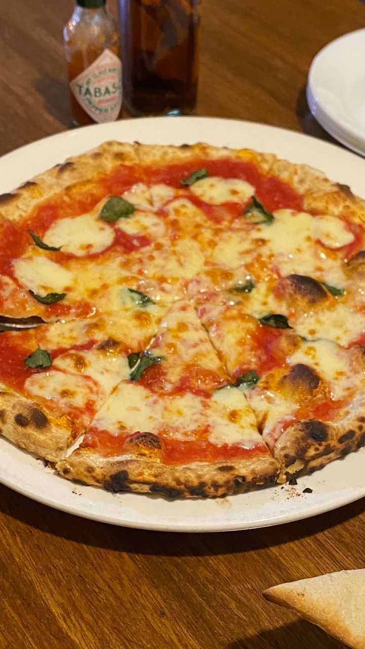 薄く焼き上げられたピザ生地に、トマトソースバジルチーズの相性が抜群です、やはり王道ですがマルゲリータの美味しさを再認識しました🤝🏻◝✩