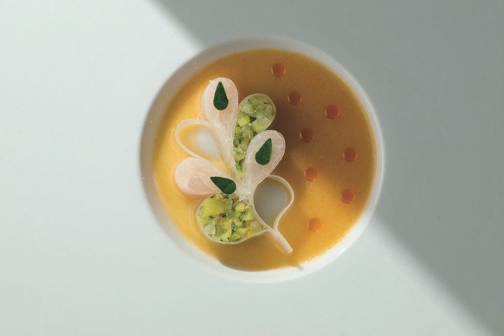 シンガポール料理として初めてミシュラン三つ星に輝いた名店。シンガポール人シェフのジミー・リムは、「ル・ムー」の料理長を務めたのち2017年に独立。魚介類を煮込んだ素朴な料理「アッサムペダス」を、新鮮な日本の生のブリを使って美しい盛り付けで提供するなど、伝統的な味をモダンにアレンジ、緻密で的確な技術と、抜群の味のバランス感覚が光る。さらにポークの干し肉をまぶしたスティックを、日本のお菓子になぞらえた箱に入れて「ポーキー」として提供するなど、思わず笑顔になってしまう演出も。
