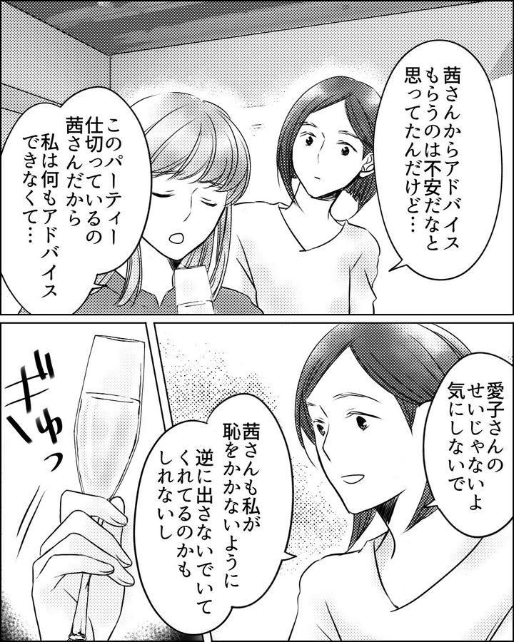 ・これ絶対に愛子さんが真の黒幕かあるいは茜さんのスパイってパターンだろうね。わざと悪口言わせるように仕向けて後で本人にチクるつもりだろ。