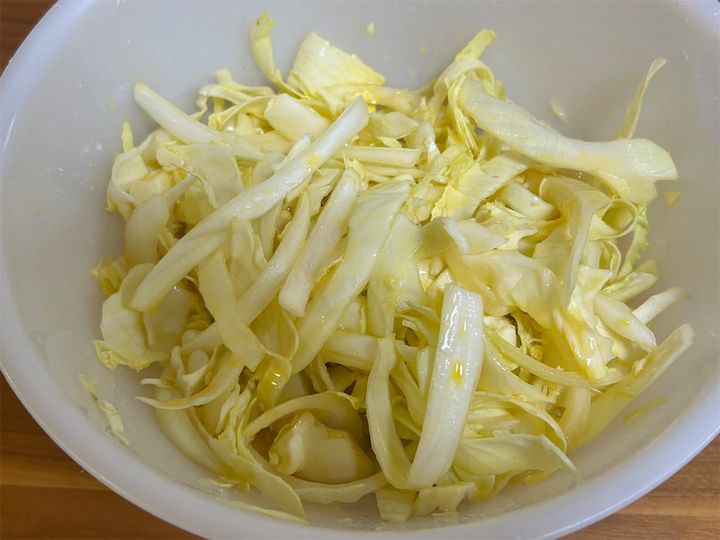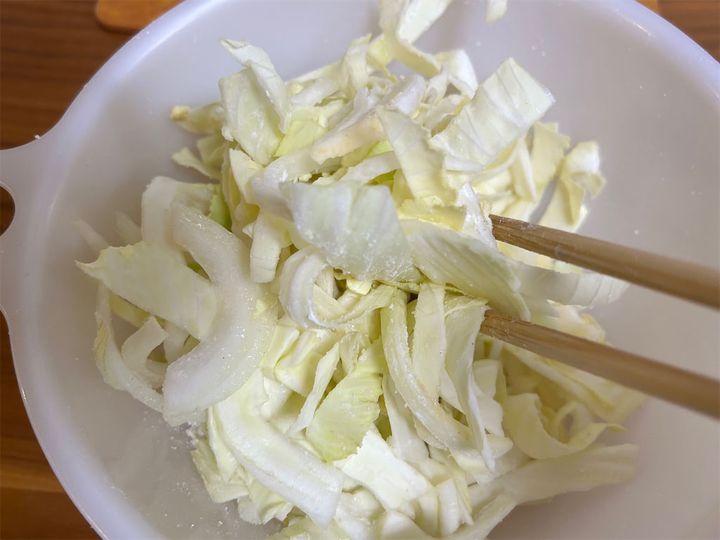 切ったキャベツはボウルに移しておきます。