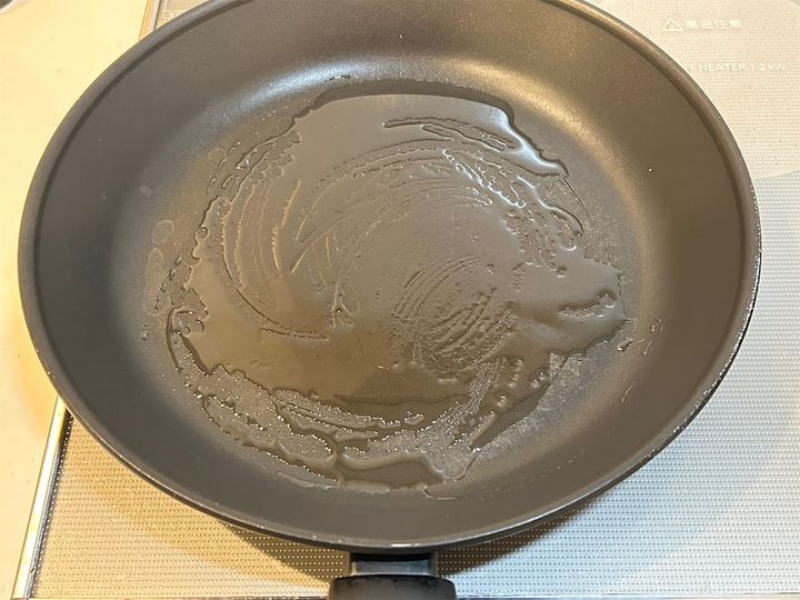4. フライパンにサラダ油を引き、中火で30秒程度温めます。
