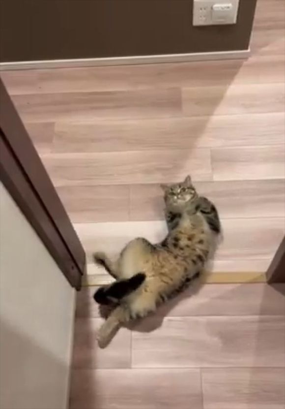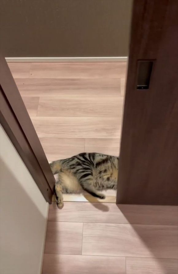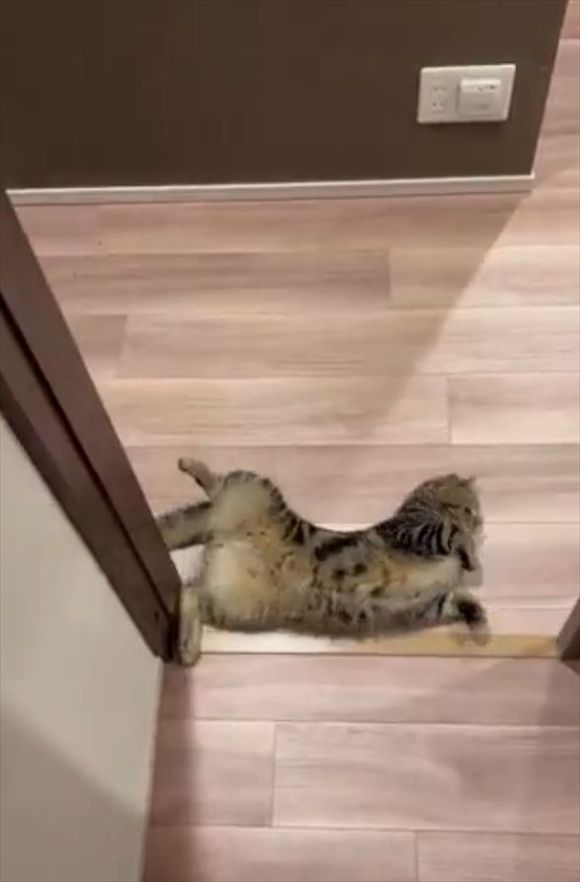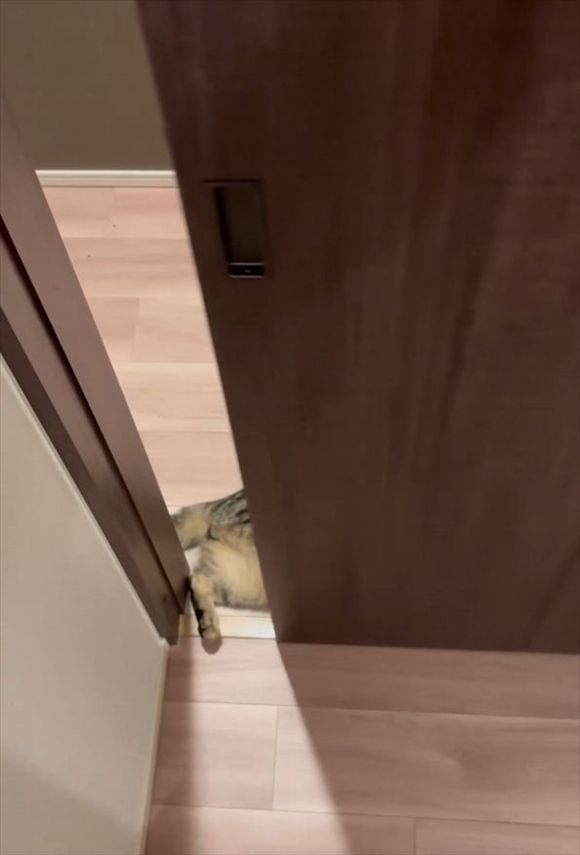 飼い主さんが部屋から出てくるのを、今か今かと待っていたネコ。 そのかわいい姿をとらえた動画が話題になっています!