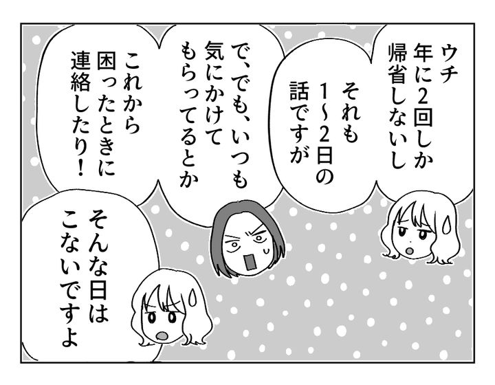 いよいよアキラさん夫婦が核心を突きました! ユウコさんは常日頃、両親にいっぱいお世話になっているのでしょう。その感謝の気持ちを贈りものに上乗せしているのだと思います。日頃お世話になっていることを考えれば、何万もの贈りものもいたって普通の金額なのかもしれません。そしてそれを「弟夫婦も同じ」だと勘違いしているのが不思議なところなのです。ユウコさん、両親にお世話になっているのはあなただけなんですよ?