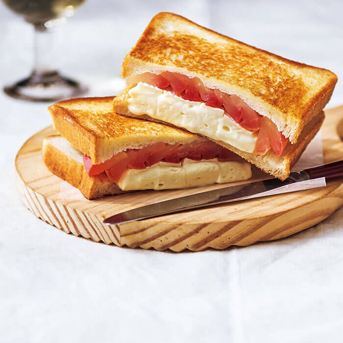 ワインとの相性も最高♡さくさくに焼いたパンにりんごとチーズを挟んだ大人のホットサンド