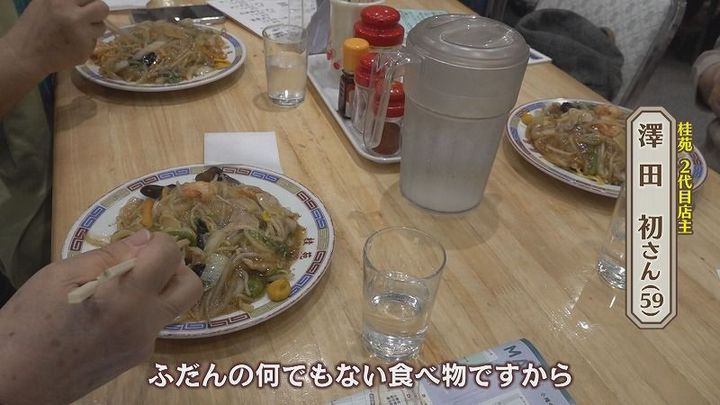 桂苑2代目店主 初さん:「中華屋に限らず、一般食堂とかスーパー銭湯とか喫茶店とか、いろんなところであんかけ焼きそばって提供されているなって。『これってなんなんだろう?』って。我々にとってはふだんの何でもない食べ物ですから、あんかけ焼そばって」
