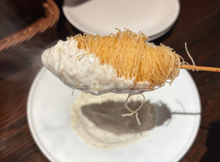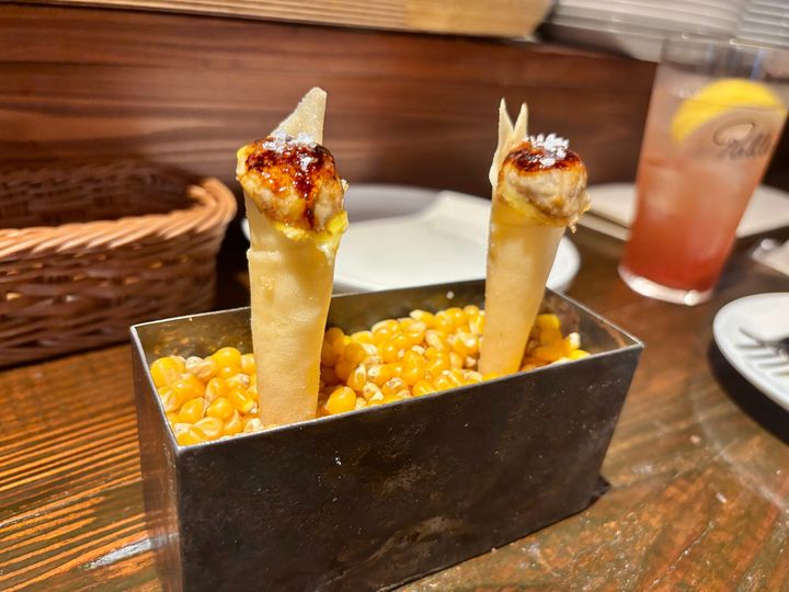 フォアグラとトウモロコシのスペイン版カプリコこ!れ!やばいです!!!私たち思わず顔を見合わせてしまいました😳✨なんだっけ??!と言いながらメニュー確認しフォアグラと…トウモロコシ🌽かぁ。と感動さすがの看板メニュー👏上にのったフォアグラのテリーヌと奥の方までたっぷ〜り入ったトウモロコシのムースが濃厚で贅沢なお味。何回でも、何個でも食べたいです🥹