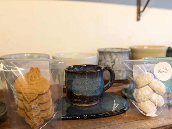 店内にはカフェスペースもあり、ホットのドリンクを注文すると、萩焼の器でいただくことができるんです。