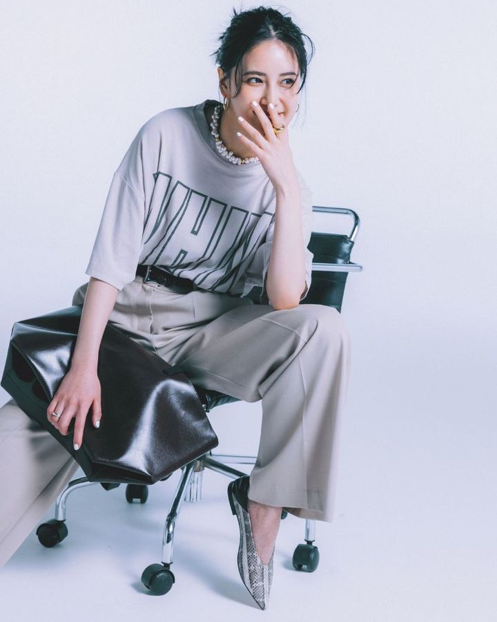 3. キレイめ派が通勤にロゴ入りビッグTシャツを取り入れるワケは?