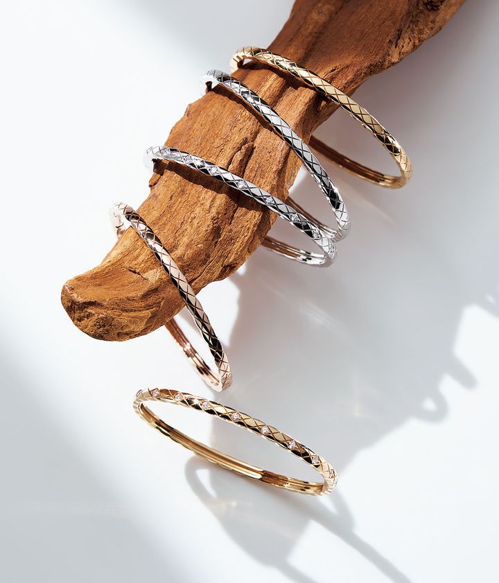 時代に左右されずタイムレスに愛されてきた「ココ クラッシュ」。キルティングモチーフが描かれたスリムなブレスレットは、重ねるほどに手元に品格を宿します。