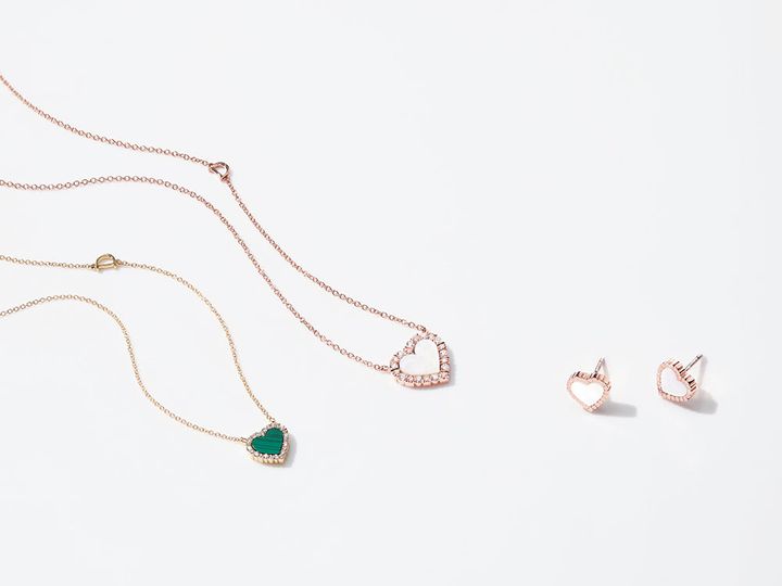 ジュエリーアートとも評されるアイコンコレクション「ベル エポック」の新作は心が躍るハートモチーフ。生命力の象徴として描かれるハートは、MOP、マラカイトの他、赤が鮮やかなカーネリアンも。