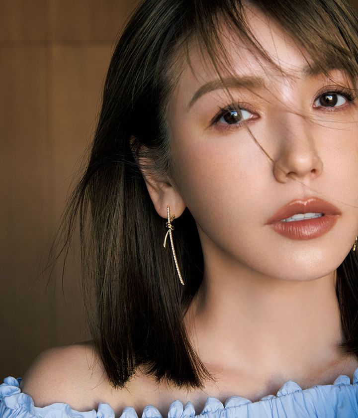 「ティファニー ノット」ピアス[YG×DIA]¥1,177,000※予定価格(ティファニー/ティファニー・アンド・カンパニー・ジャパン・インク)ブラウス¥92,400(エンフォルド)