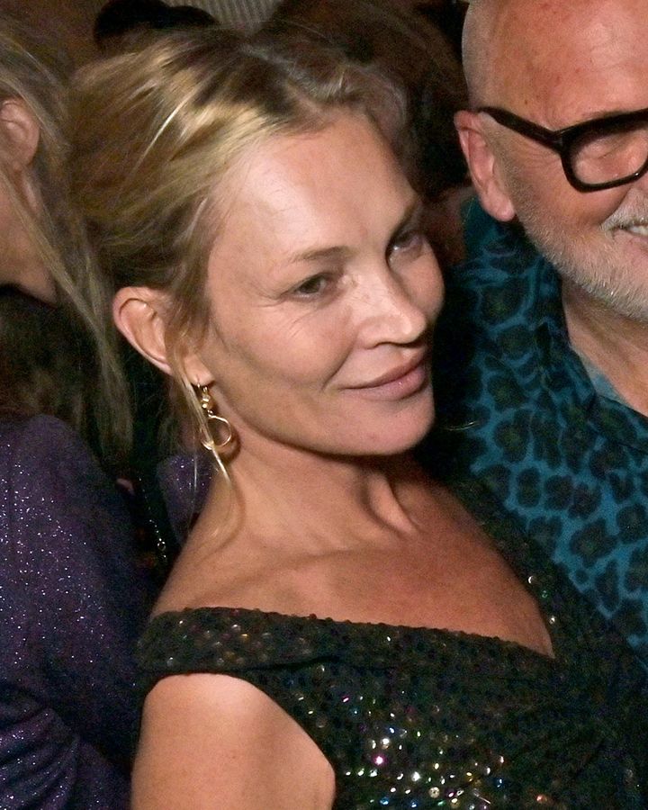透明感のあるフレッシュな肌で現れたケイト。その秘密は彼女自身のビューティーブランド「Cosmoss(コスモス)」によるもののよう。メイクもヘアも控えめでしたが、スパンコールのきらめく装いでしっかりとドレスアップし、相変わらず存在感は抜群。やはりパーティーの場で“魅せる”ことを忘れていない。