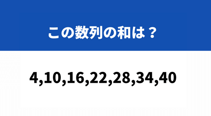 大人が意外とわからない数学「4、10、16、22、28、34、40…」→この数列の和は?