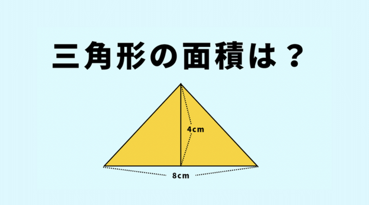 これどうやって計算するか覚えてる?「底辺の長さが8cmで高さ4cmの三角形」→面積は?