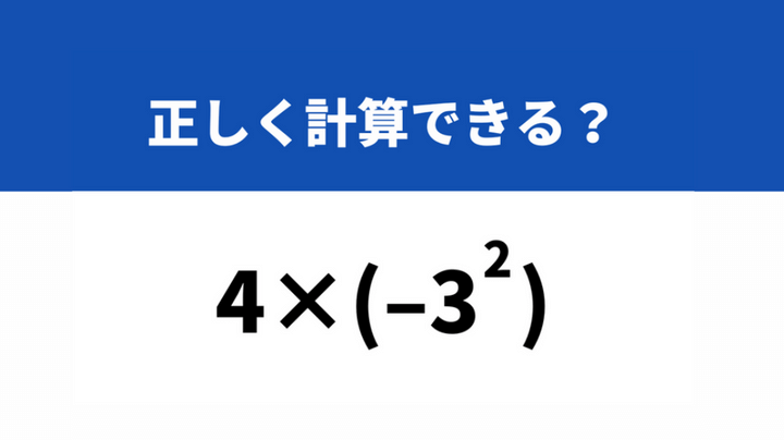 どうやって計算するか覚えてる?「4×(−3^2) 」→正しく計算できる?