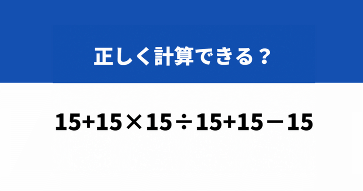 どこから計算するのが正解?「15+15×15÷15+15−15」→正しく計算できる?