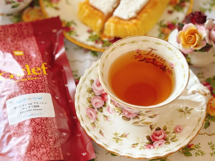 今回、生シフォンに合わせたのはジークレフ「ダージリン 1stフラッシュ サングマ農園」です。涼やかな若葉の香りが飲み心地い良い紅茶です。「どうかな?合うかな?」と試してみましたが、甘すぎないシフォンケーキとも合いました。