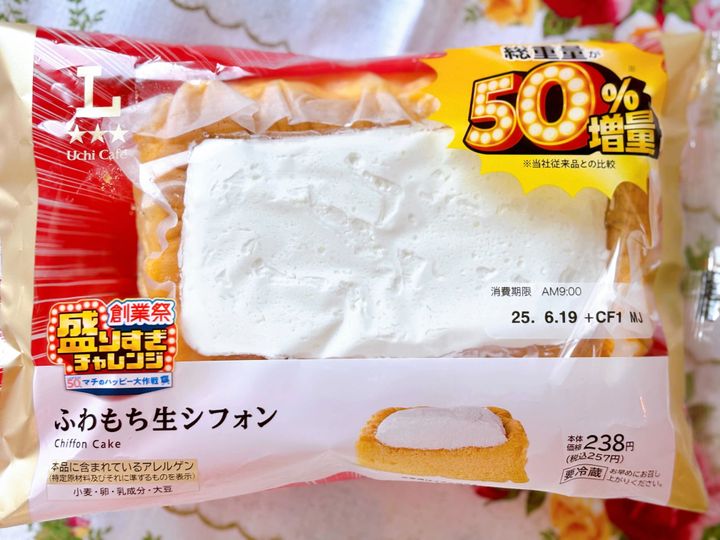 3. 【6/16 ローソン新作】今だけ!総重量50%増「盛りすぎ!ふわもち生シフォン」食感たまらない!実食レポ紹介