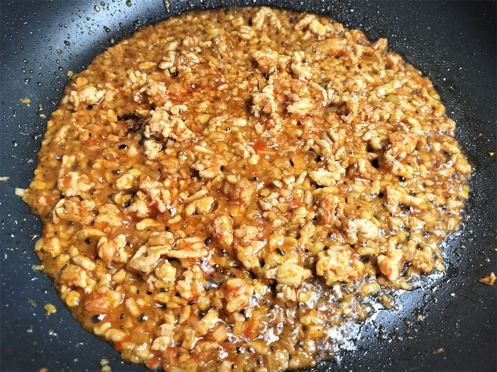9. 砂糖、ゴマ油、花椒を加えて強火にします。