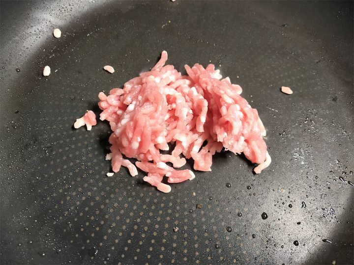 5. フライパンを洗わずに豚肉を入れ、弱火で炒めます。
